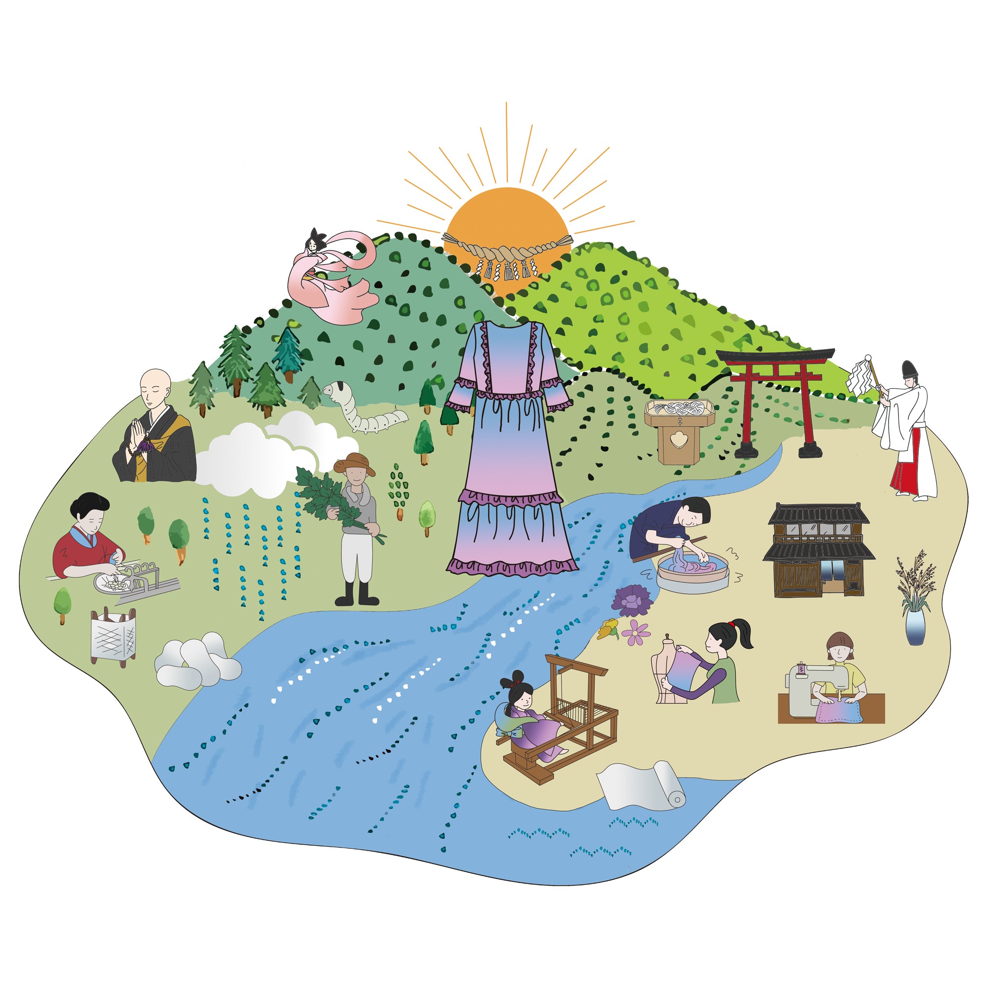 Japanese mythology itself tells of "Amaterasu Ōmikami" the sun goddess, engaged in the act of weaving—illustrating how deeply silk has been woven into the spiritual and artistic foundations of Japanese culture.