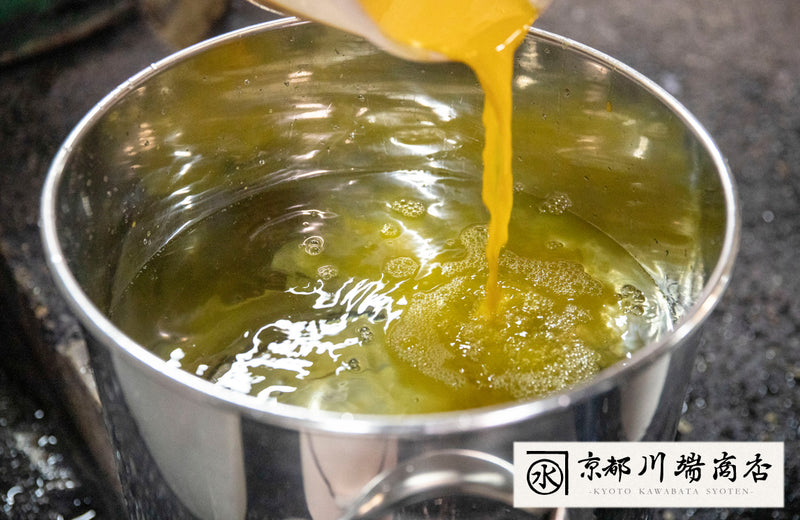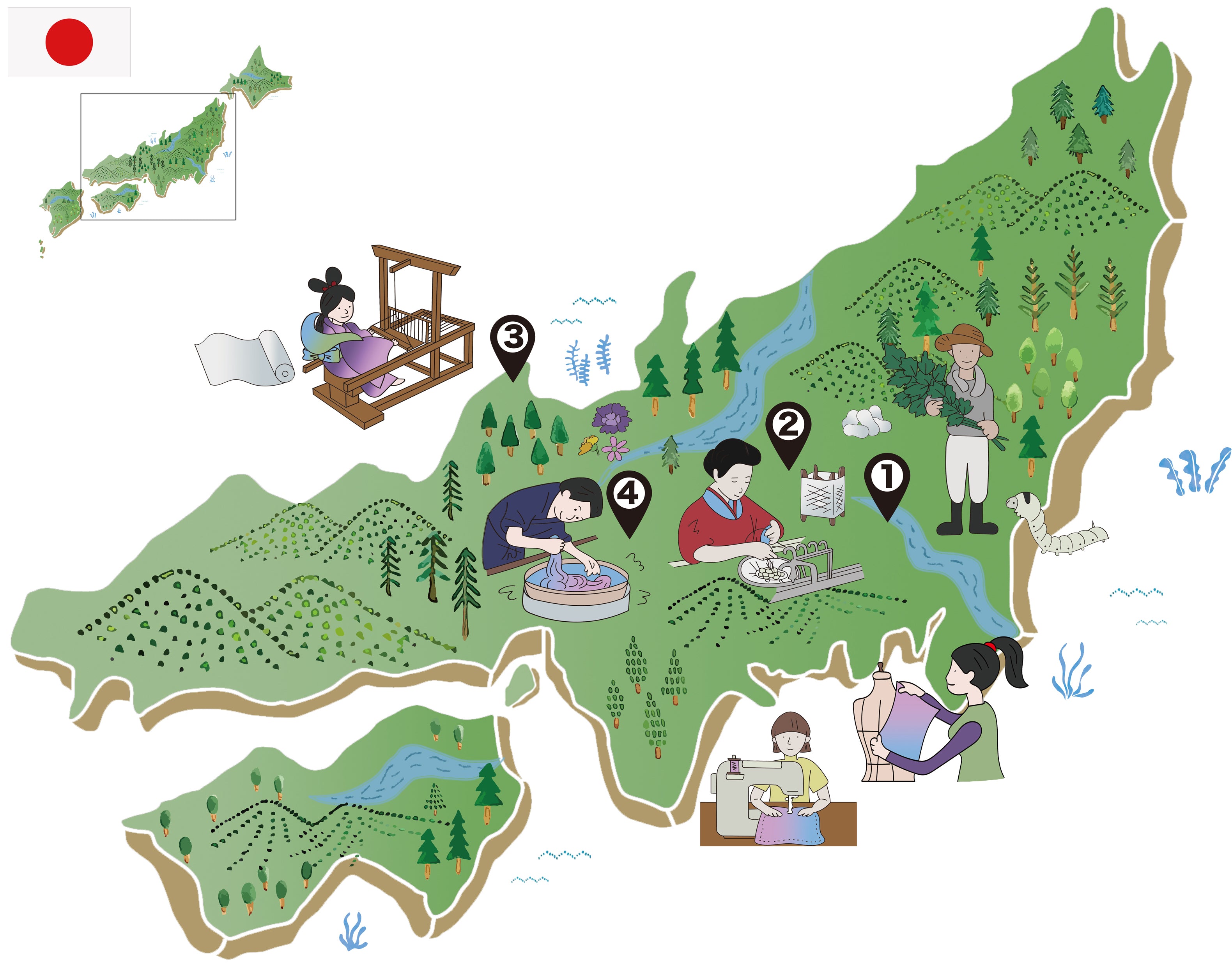 Kawabata Shoten has developed Shin Manyo-zome, a dyeing method that uses natural dyes where the dye ingredients are used in their natural state as much as possible.